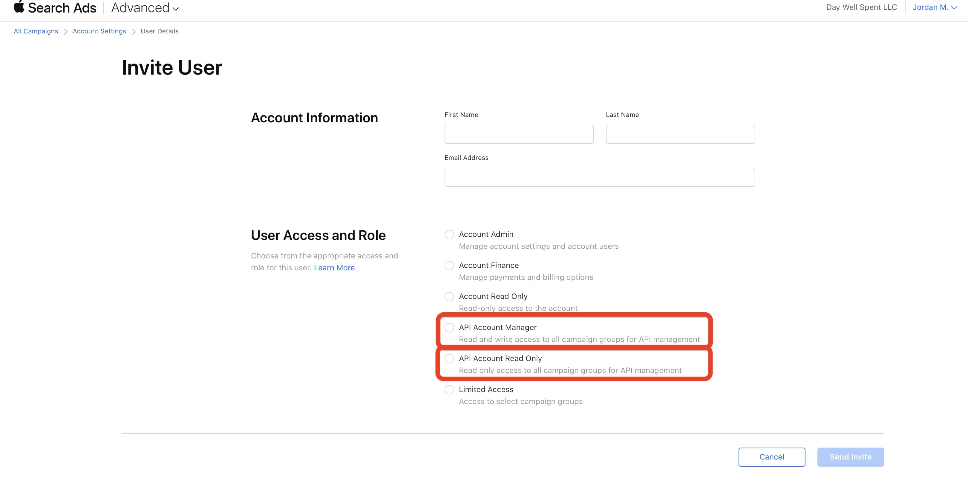 - First, you'll need to create a user in Apple Search Ads using a different Apple Account than your primary Apple Account.